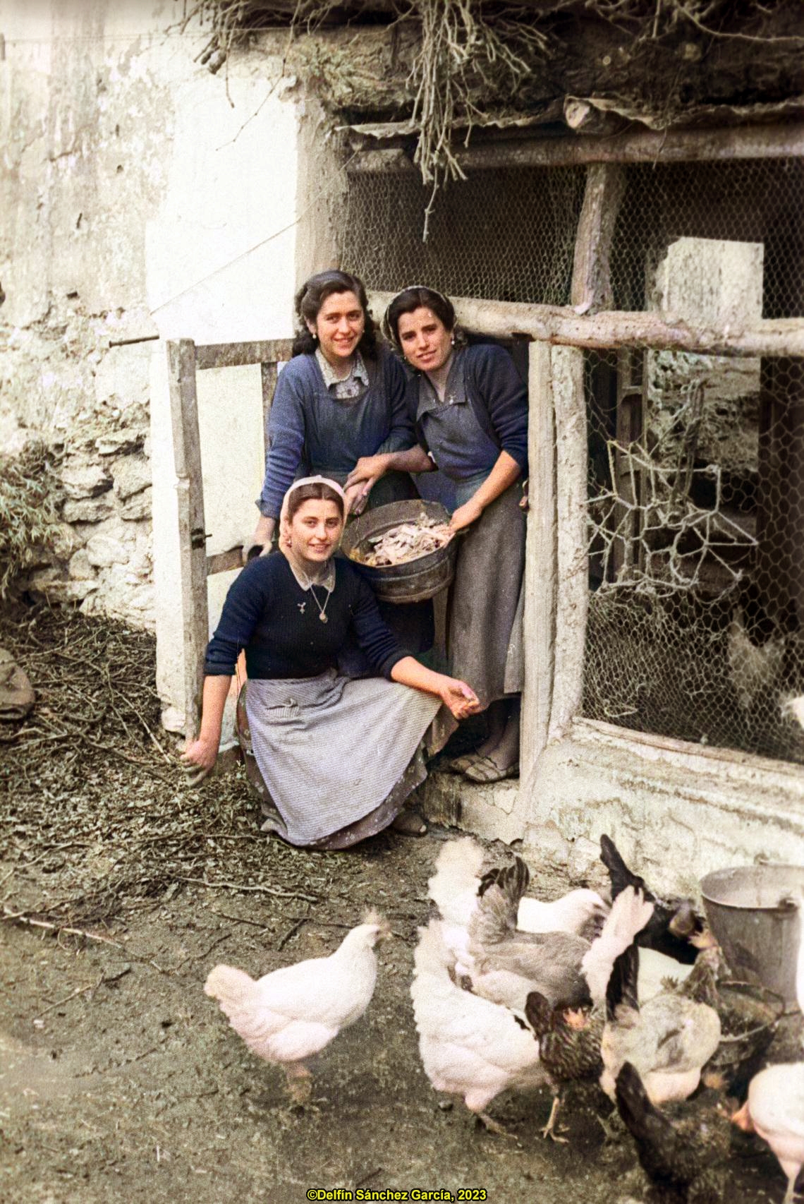Mujeres cuidando el gallinero